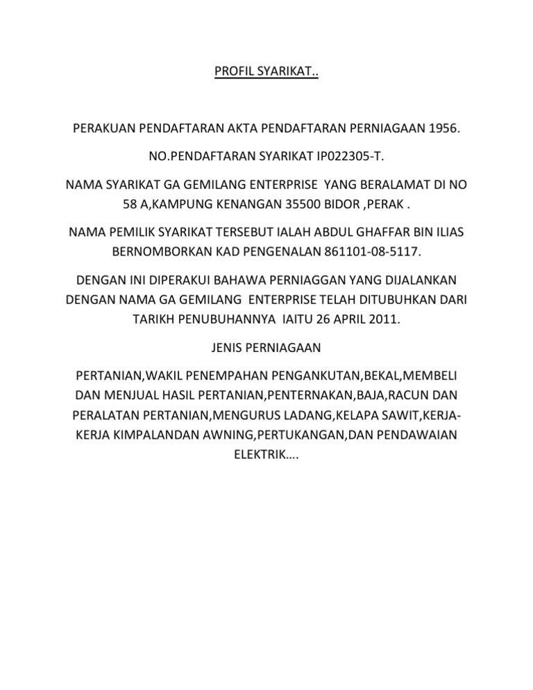Contoh Profile Syarikat Enterprise.